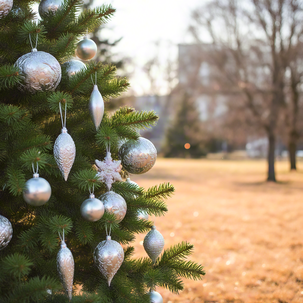 Christmas Tree Branch with Silver Ornaments