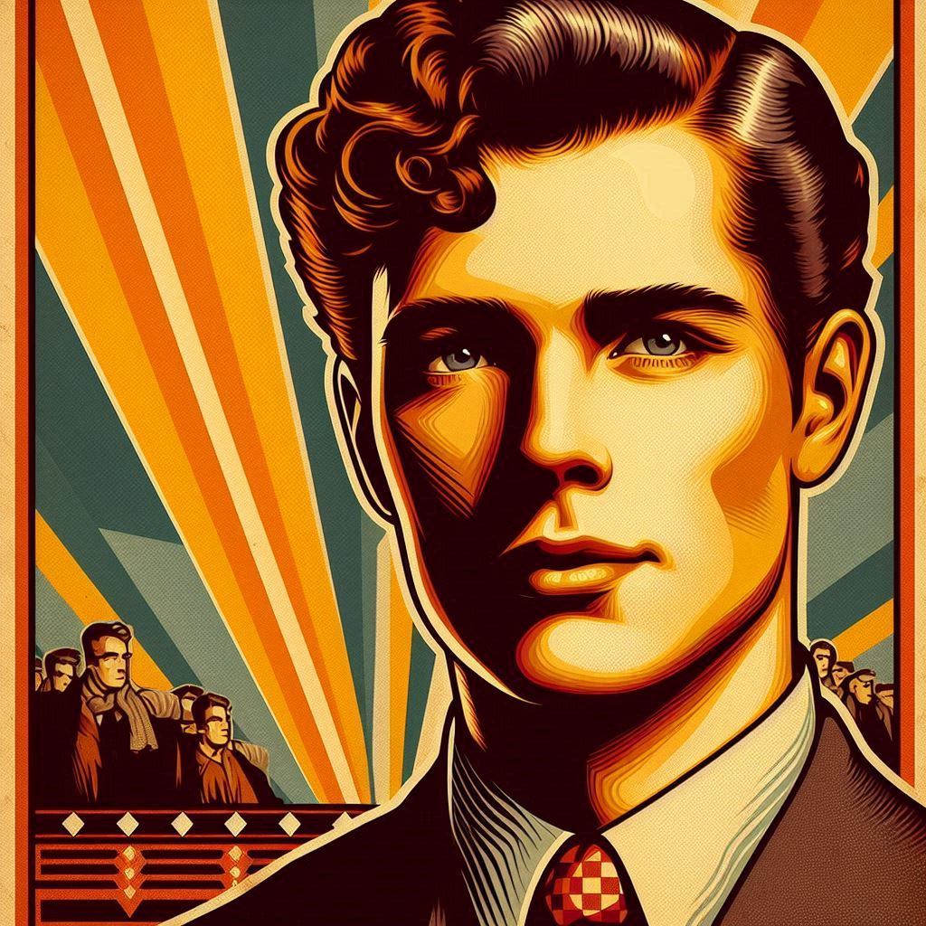 Close-up portrait of a man with sharp facial features and warm golden lighting
