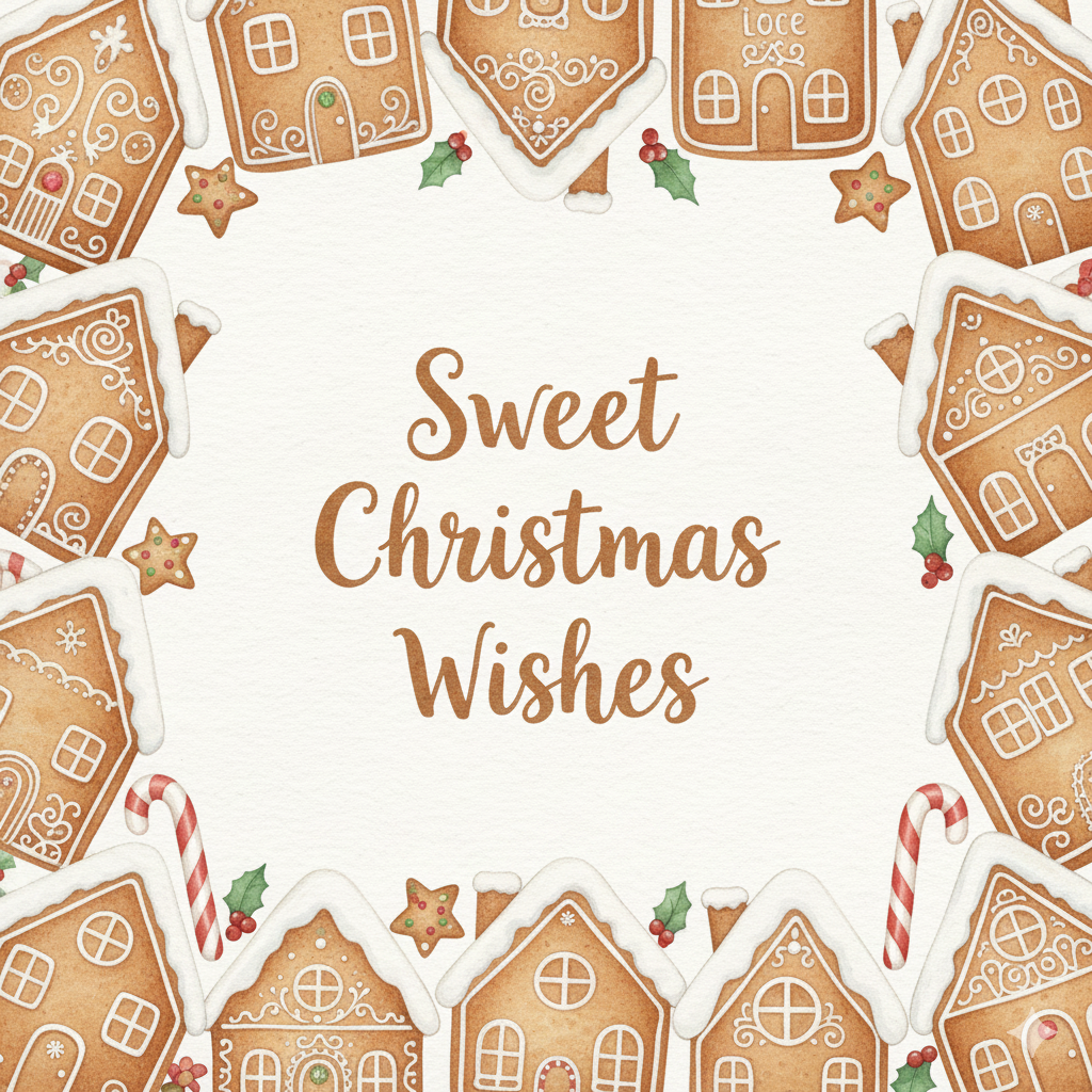 Watercolor Christmas card with gingerbread cookies around festive greeting