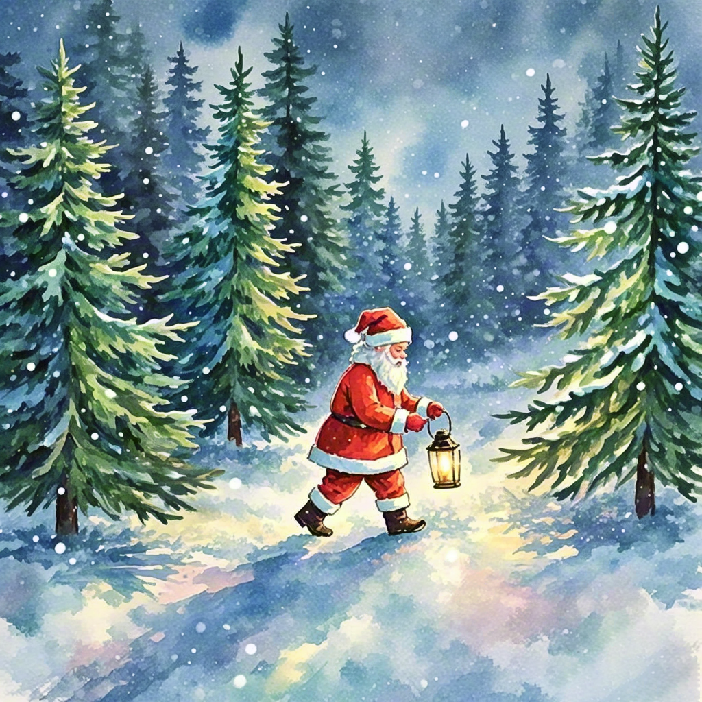 Watercolor Fox and Winter Birds Illustration