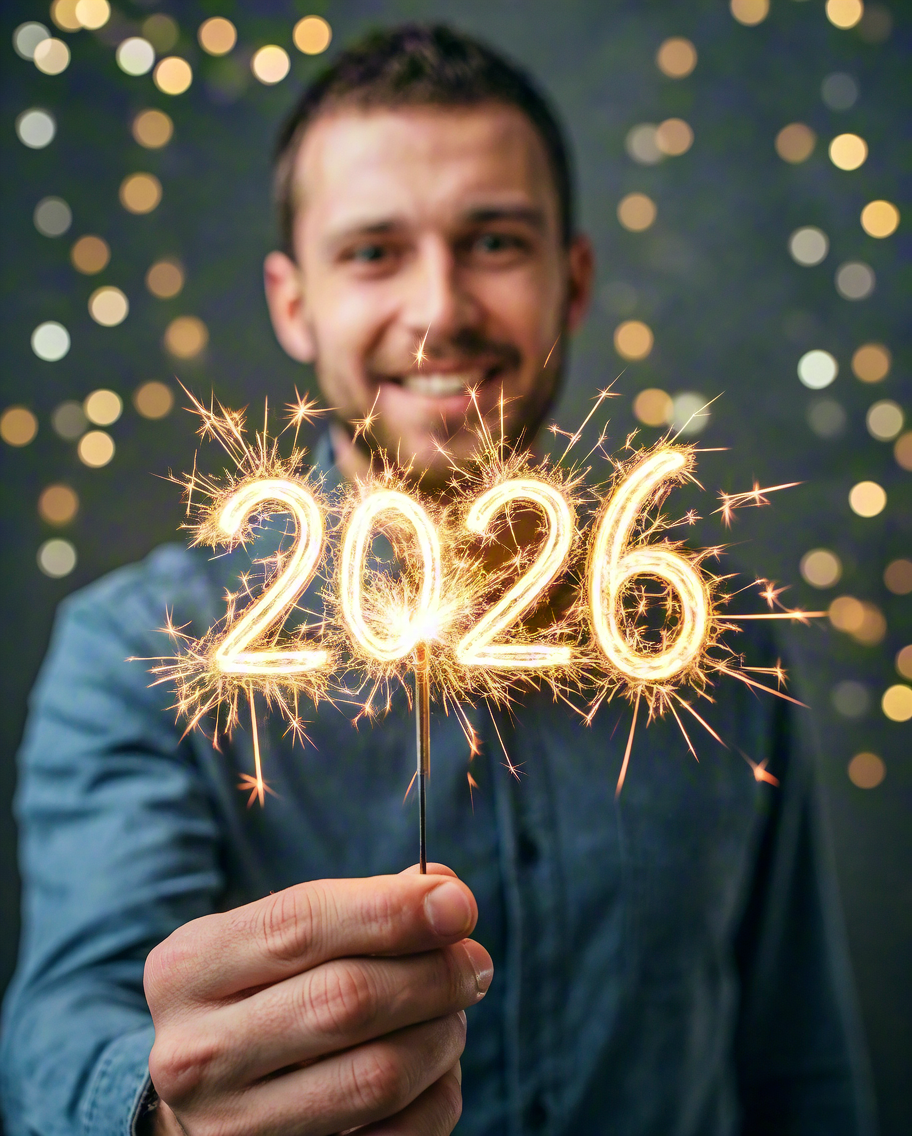 Man holding sparklers — 2026 New Year celebration