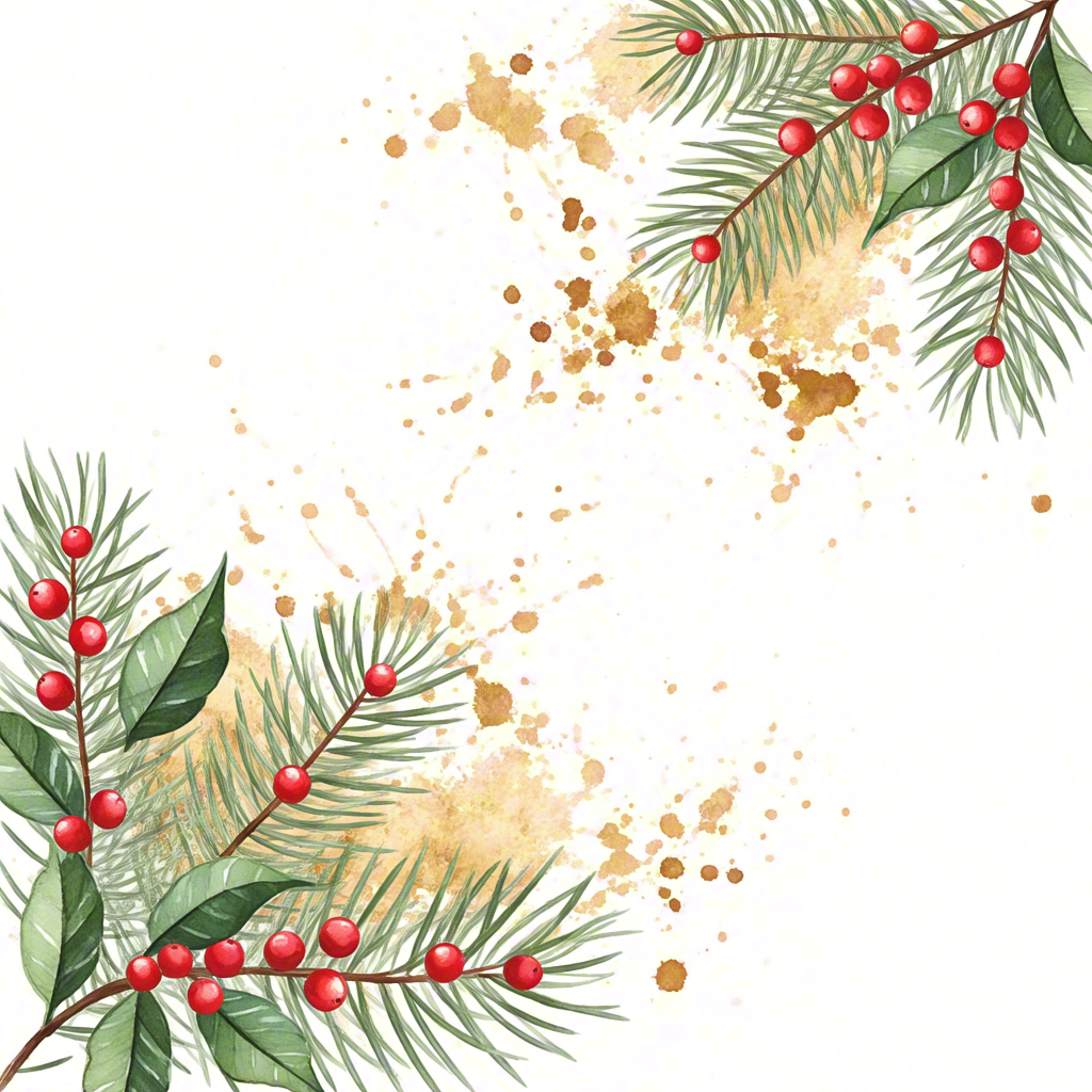 Evergreen branches and red berries forming a holiday border