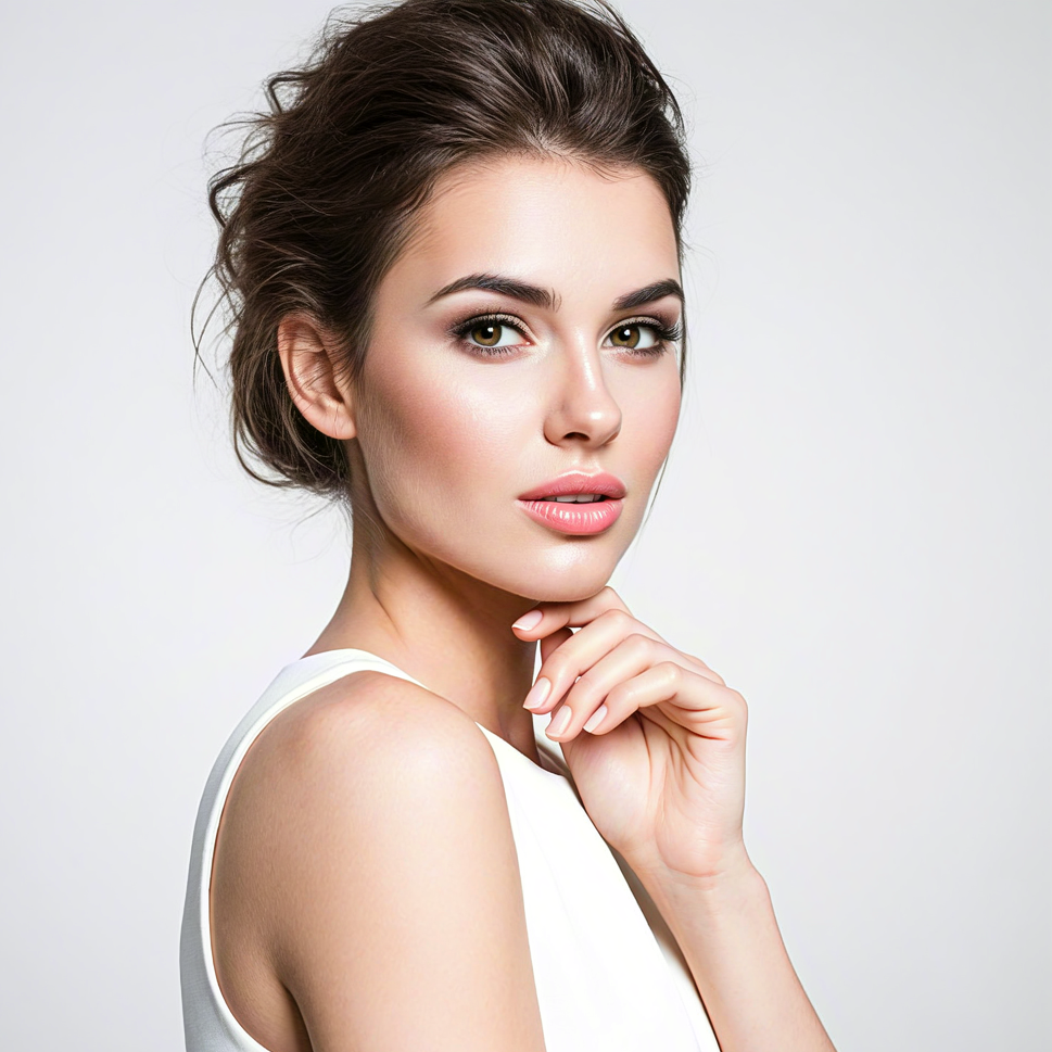 Elegant woman beauty portrait with soft makeup – studio fashion lighting