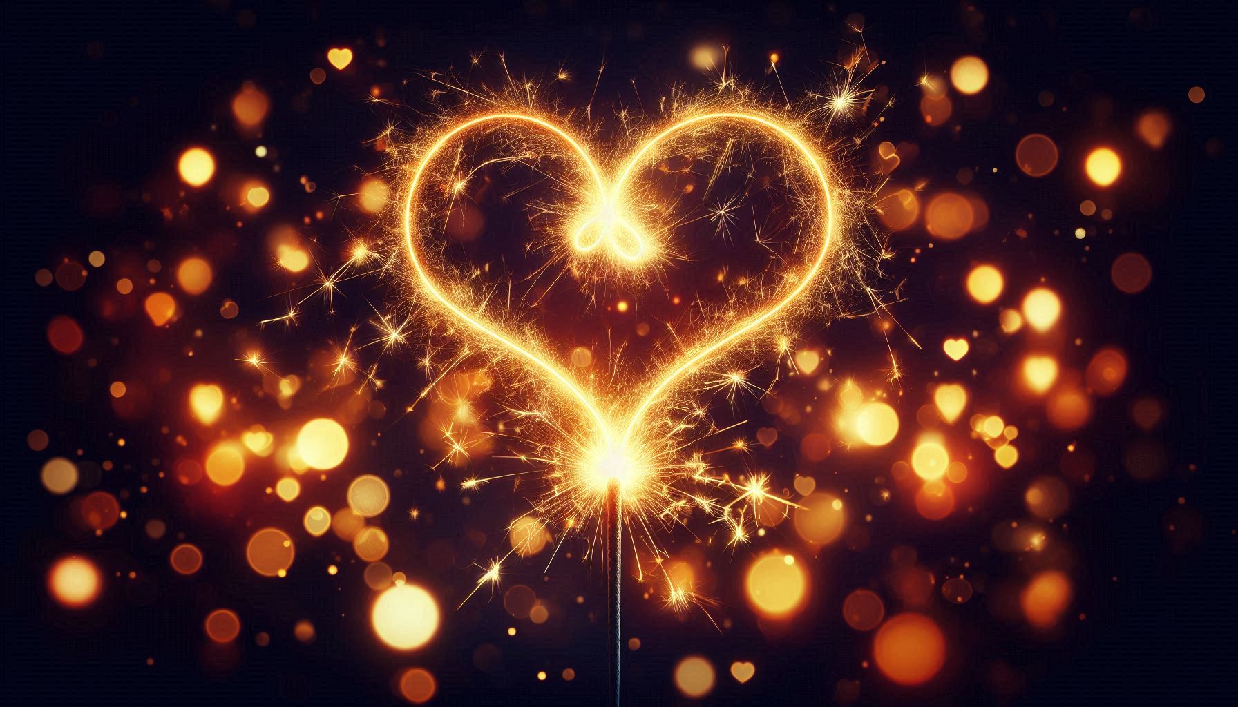 Glowing golden heart lights on black background
