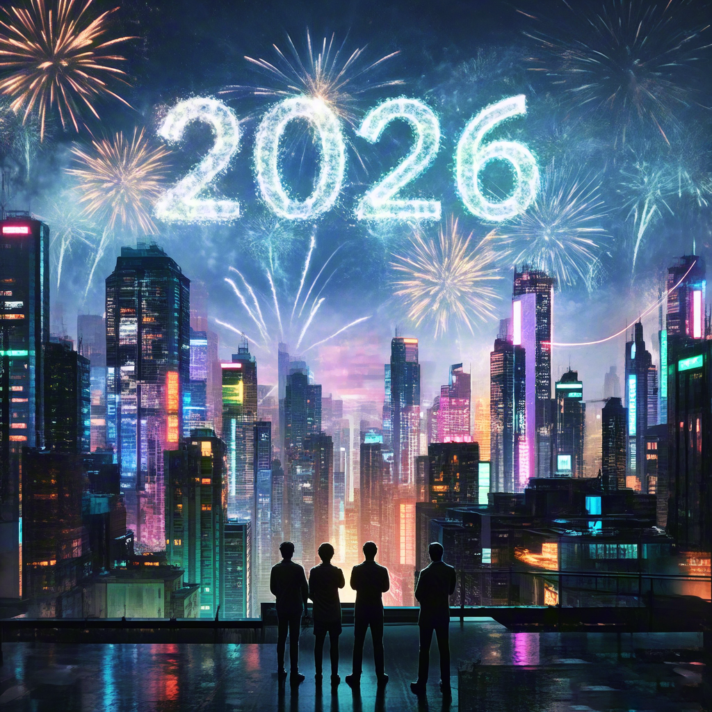 New Year 2026 fireworks over city skyline