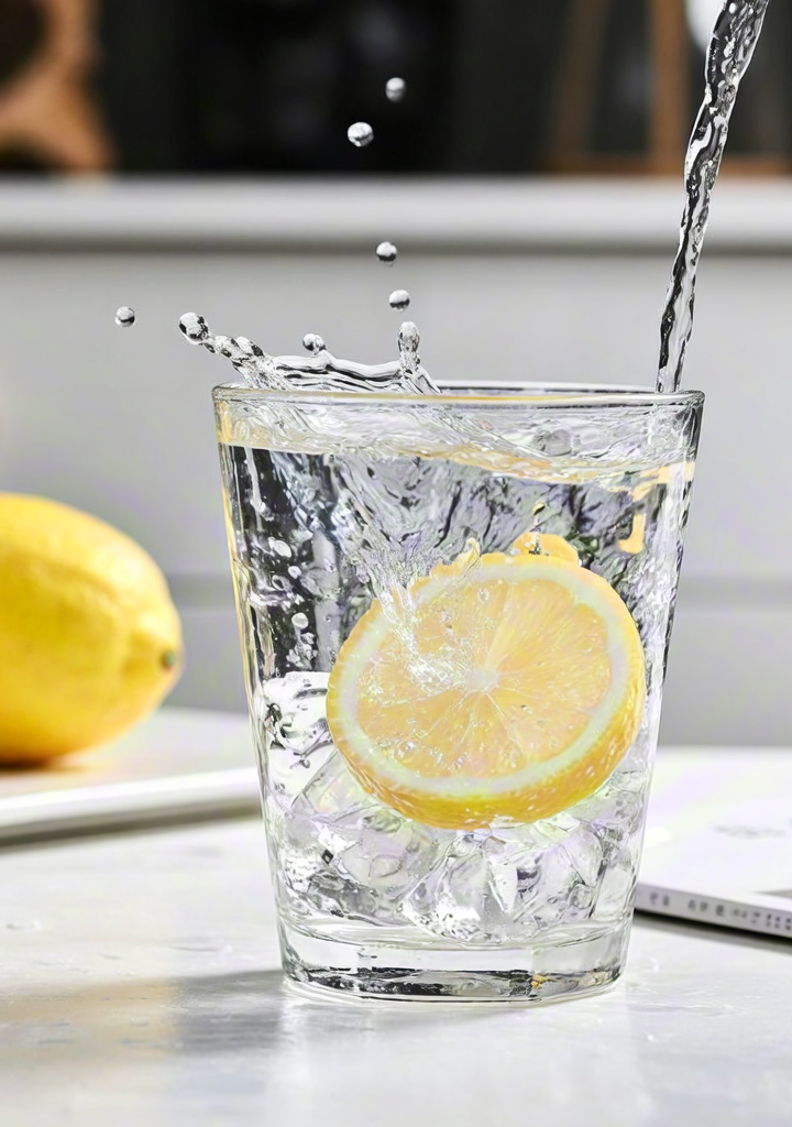 Refreshing citrus drink with splash on desk