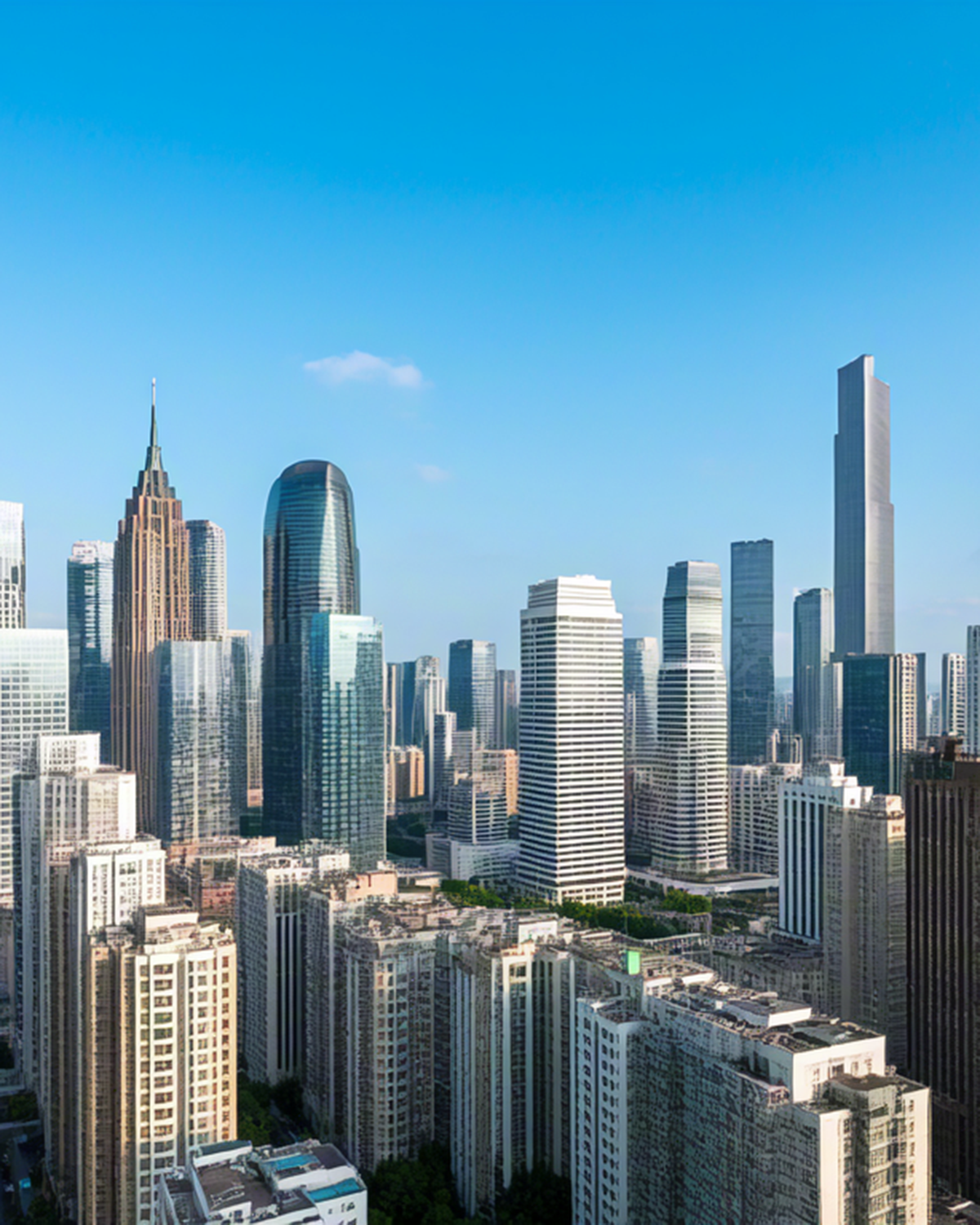High-rise buildings in bright sunny cityscape