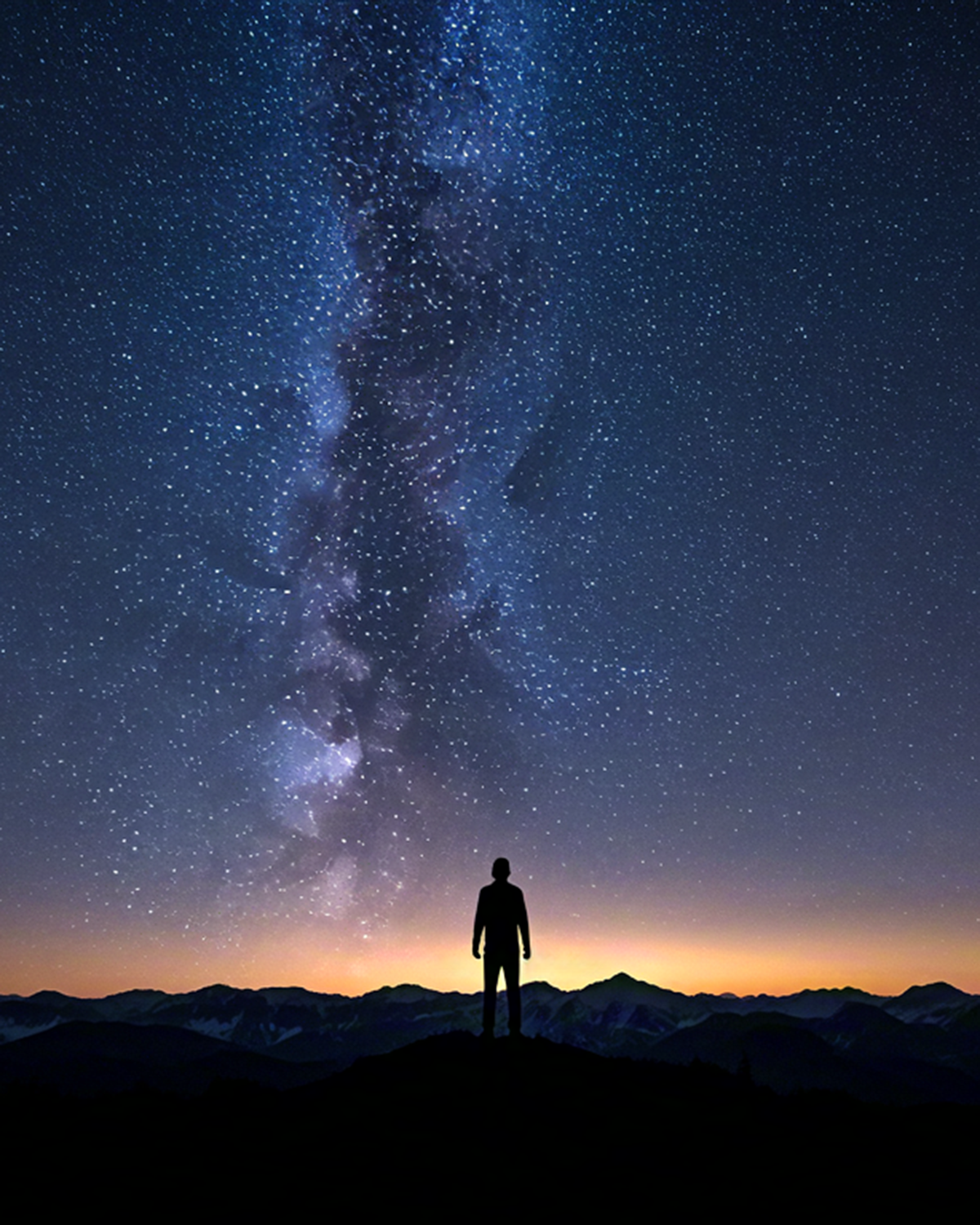 Silhouette of man beneath starry night sky