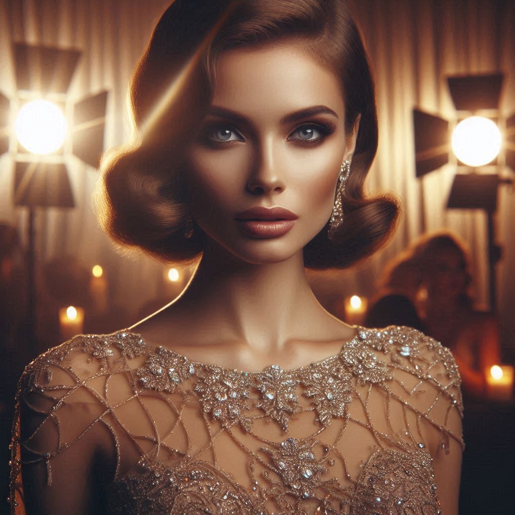 Glamorous woman posing in golden candlelit environment