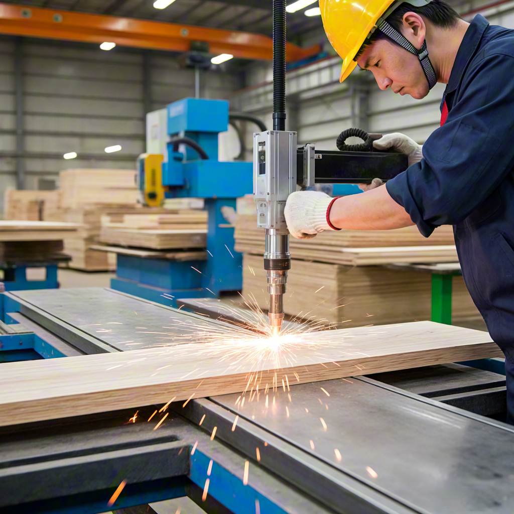 Woodworker Cutting Wooden Planks With Precision Machine