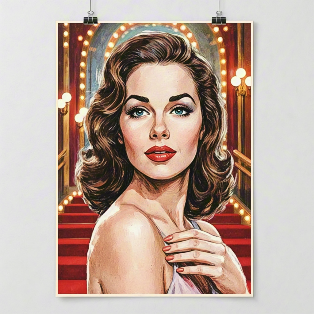 Classic pin-up style beauty illustration