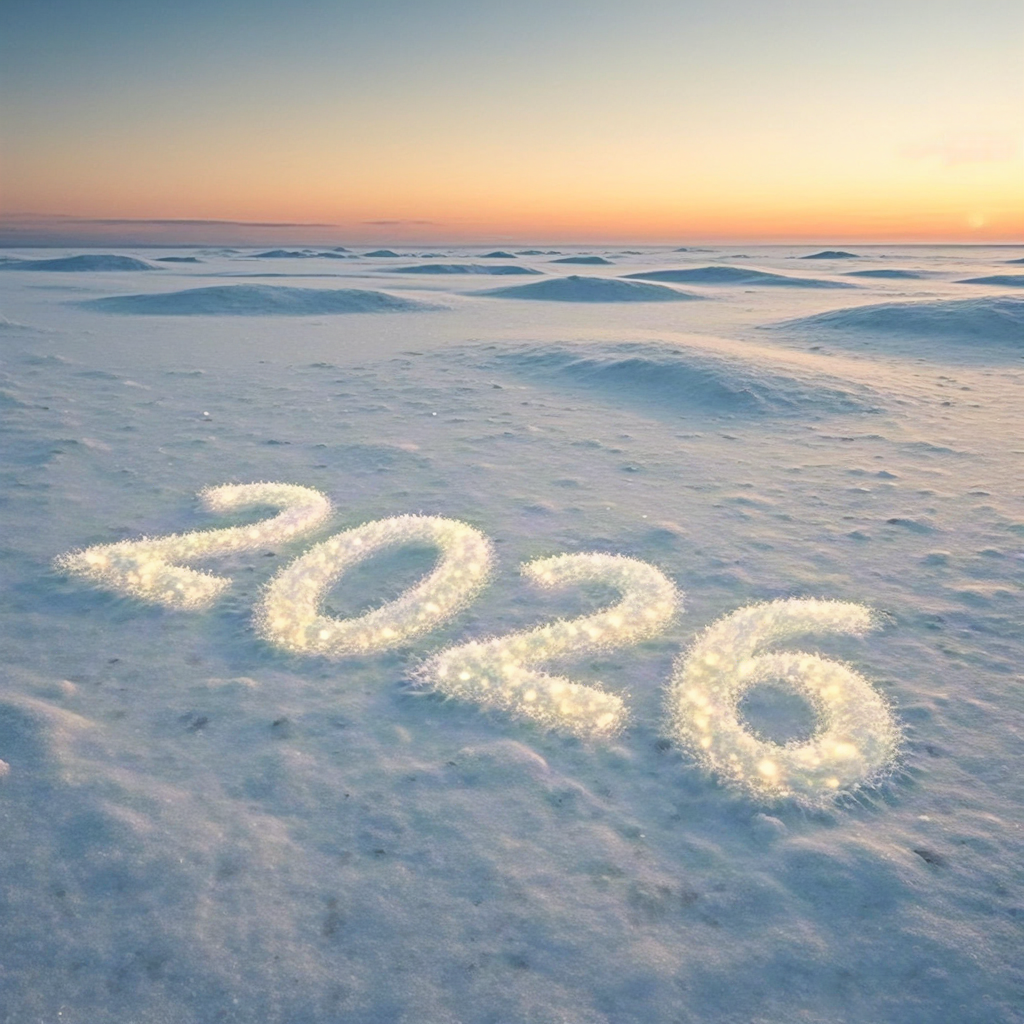 Silhouetted couple standing under glowing purple 2026 lights at night