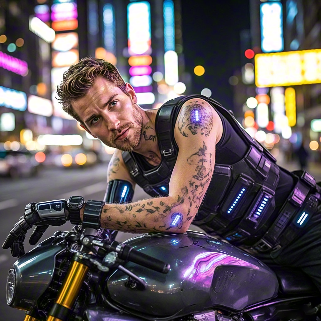 Futuristic Biker in Neon Urban Night