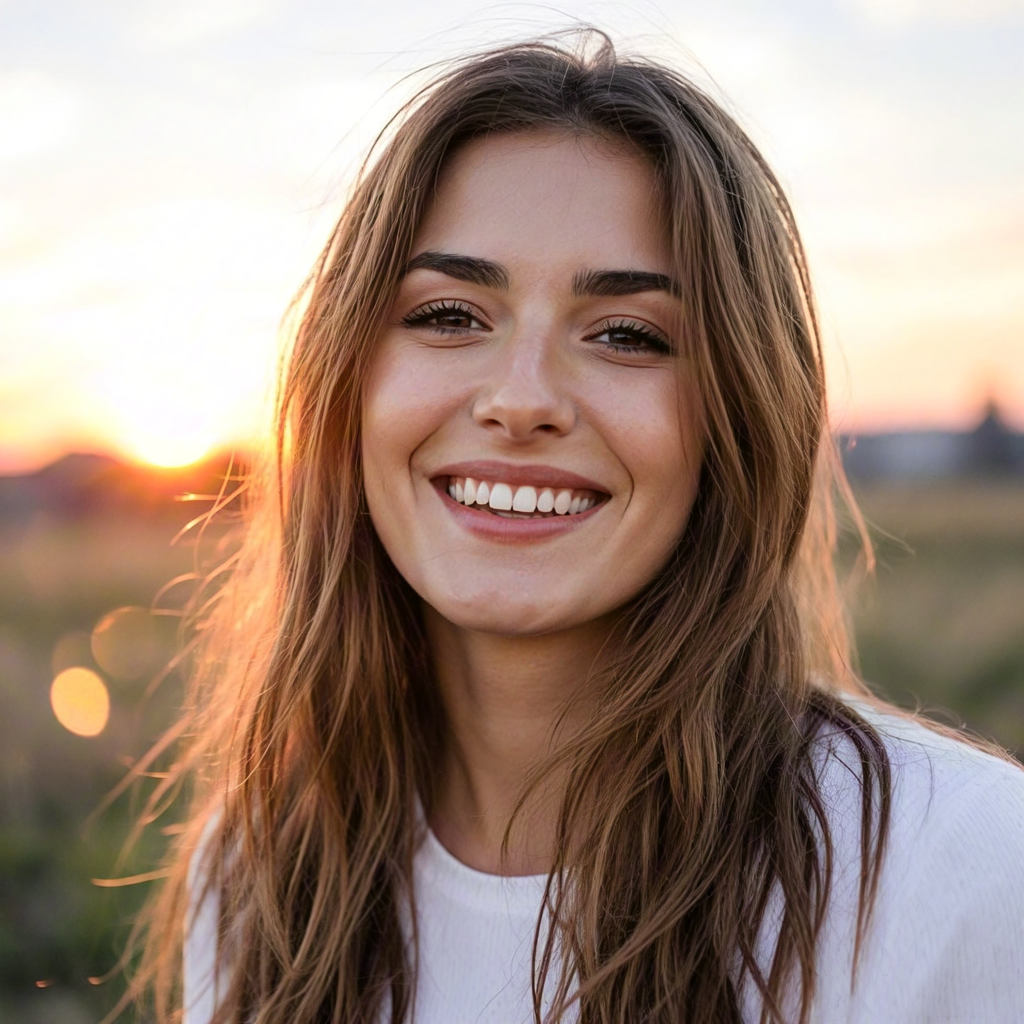 Smiling Woman Portrait at Sunset