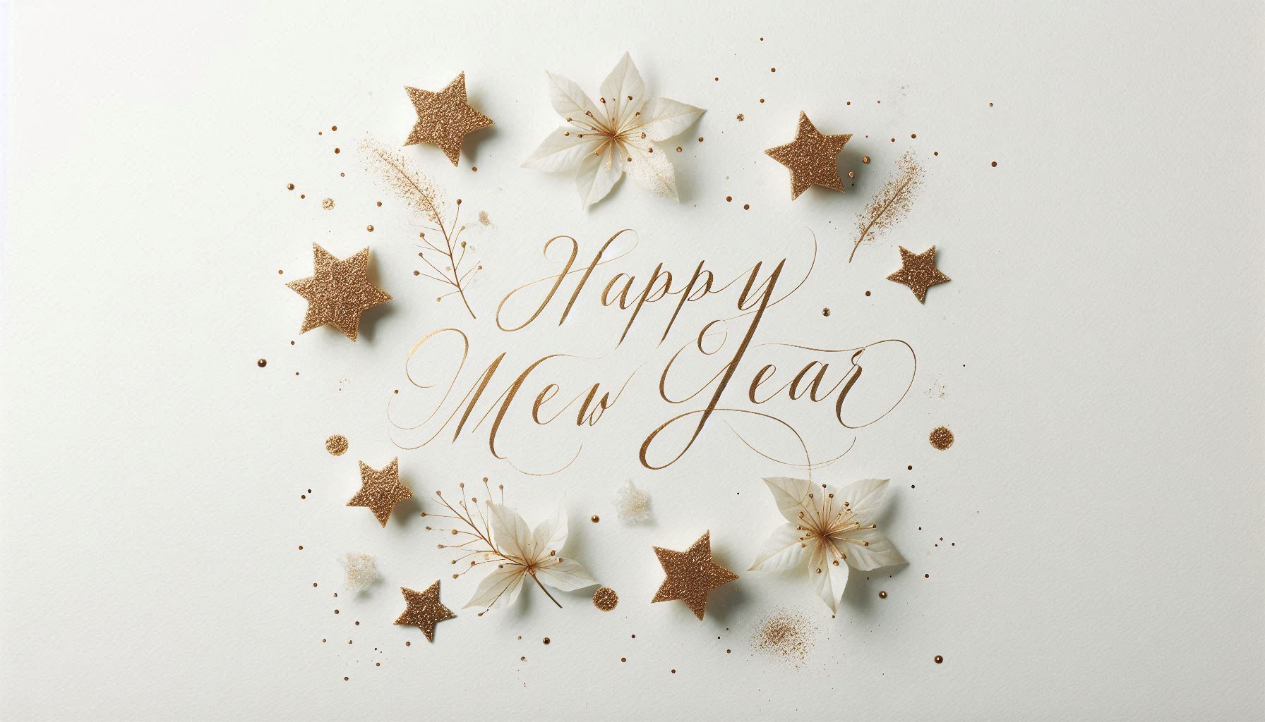 Cozy winter village with pine trees and snow, Season’s Greetings text