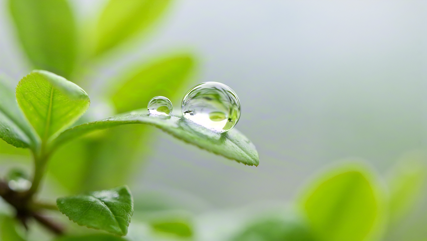 Dew drop on fresh green leaf
