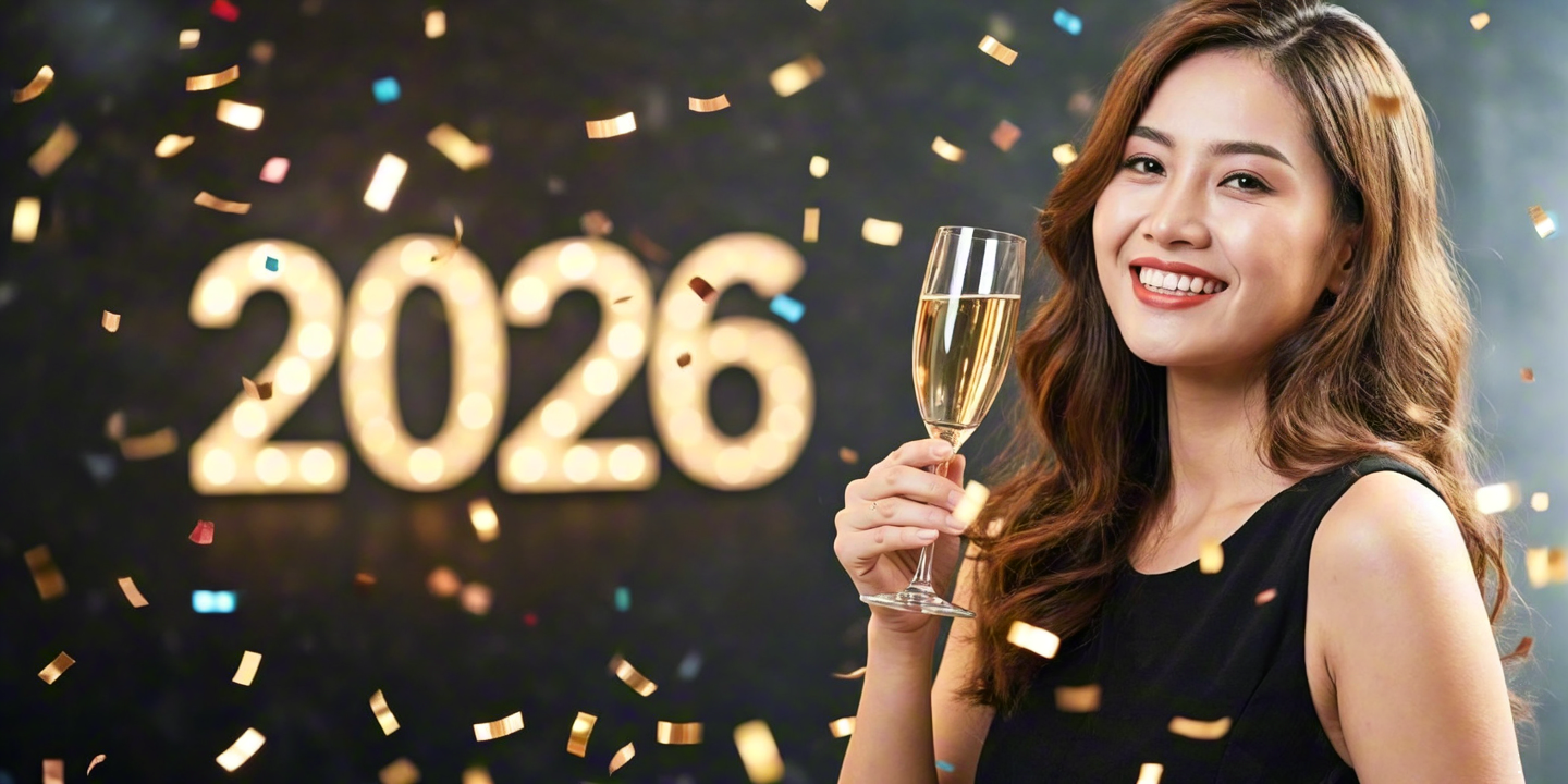 Happy woman celebrating New Year 2026