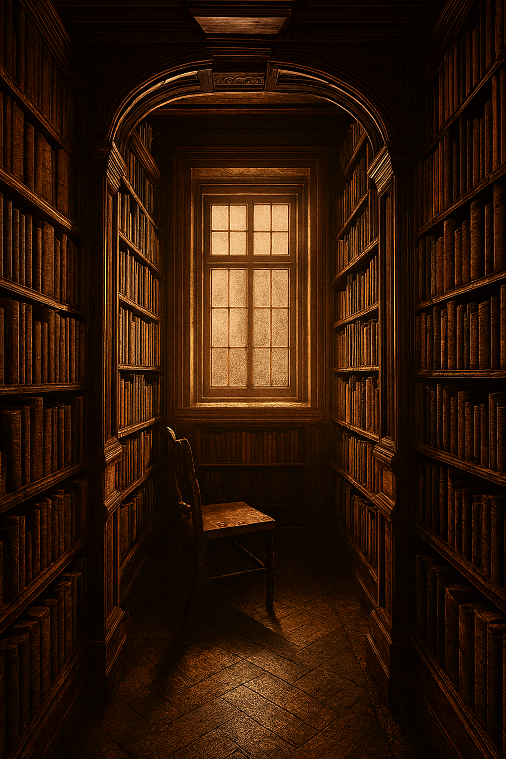 Old library hallway with warm light