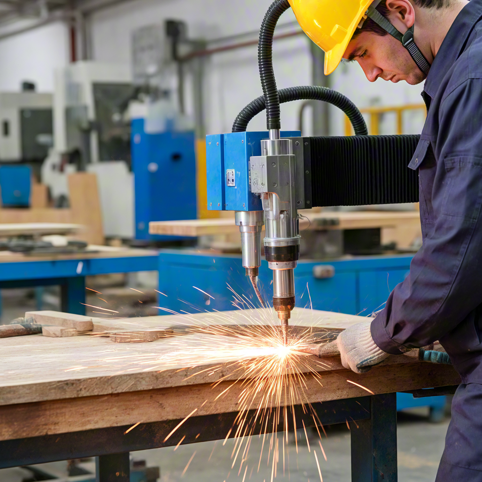 Detailed view of woodworking studio filled with handcrafted miniature architectural models, carving tools, and warm daylight atmosphere
