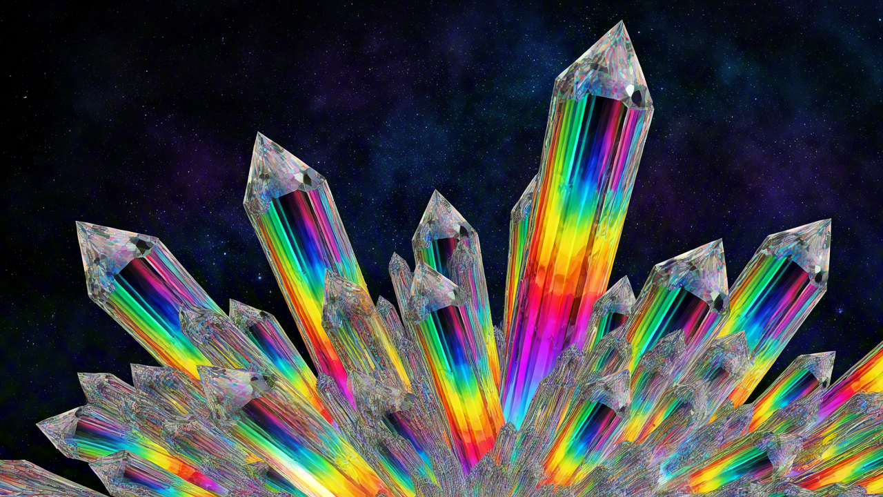 reflective crystal cluster with prismatic rainbow colors