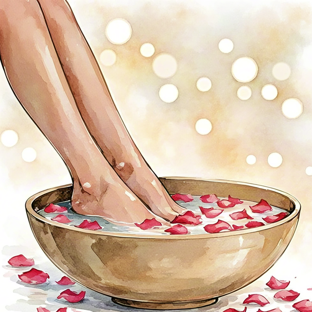 Watercolor foot spa with petals