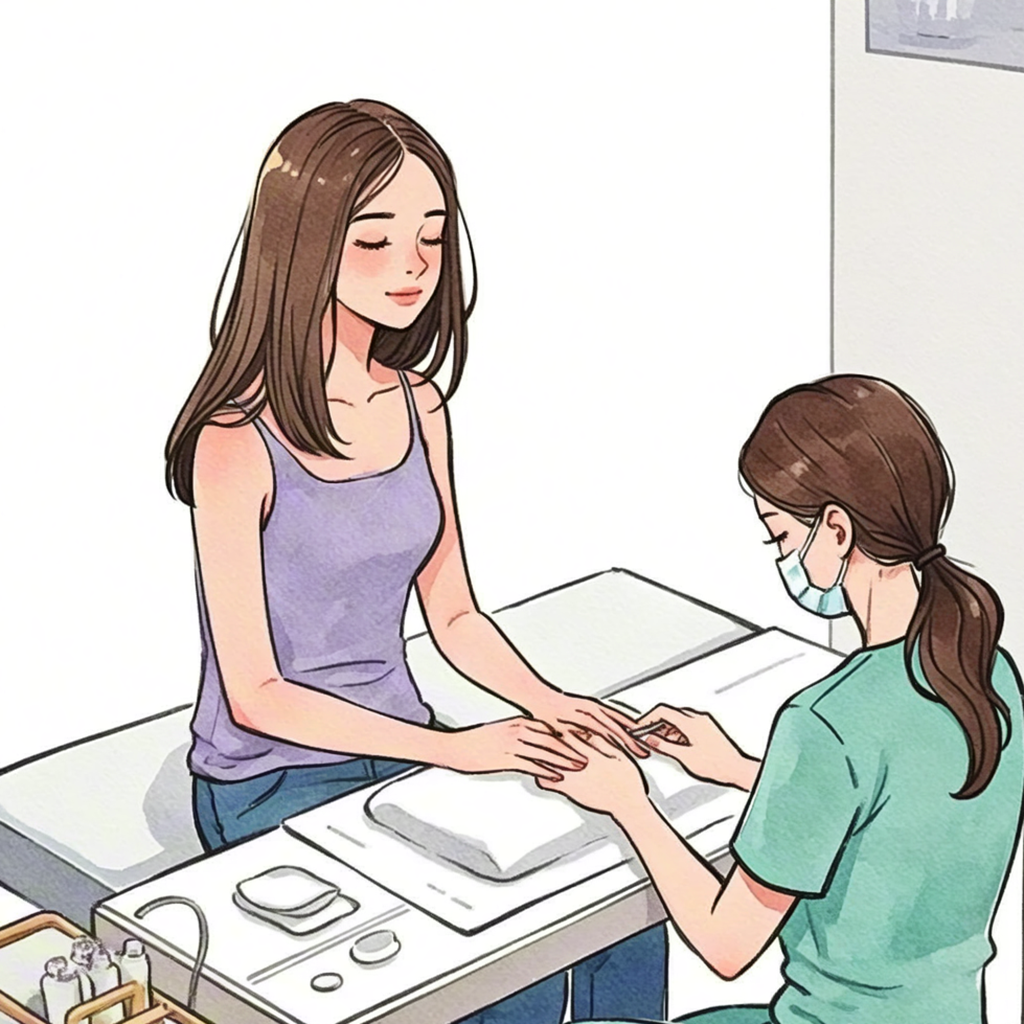 Watercolor nail salon scene