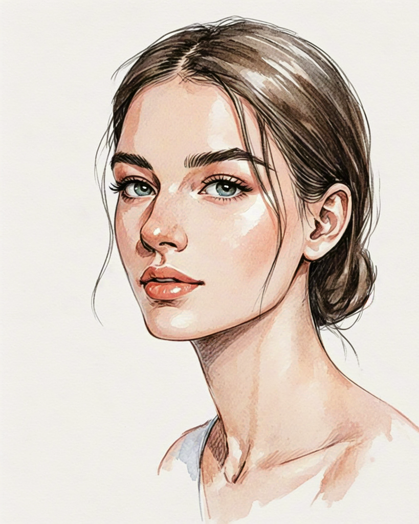 Watercolor portrait of a young woman