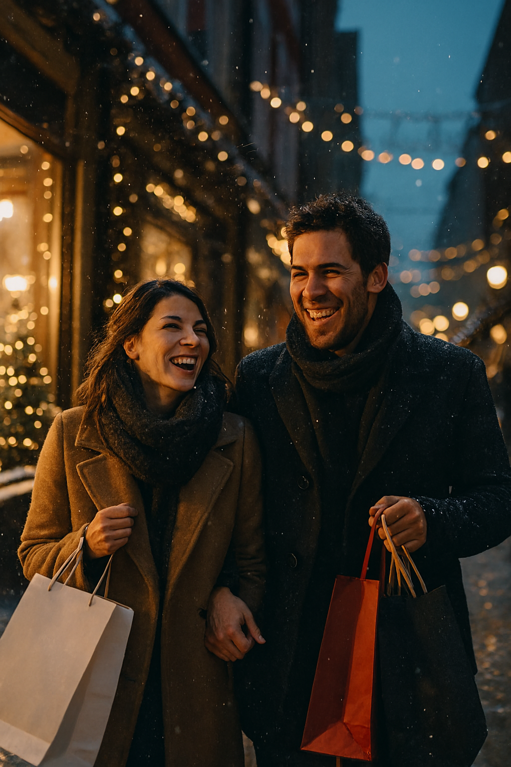Winter Night City Couple Walk
